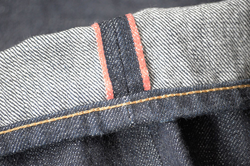 90㎝幅しか織ることのできない旧式織機で丁寧に作り上げたmade in kojima(児島)13.75ozの赤耳セルビッジです。真っ赤な耳は折り返してちらりと顔を見せアクセントにし て下さい。